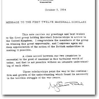 Founded by a 1953 Act of Parliament, and named in honour of US Secretary of State George C Marshall, the Scholarships commemorate the humane ideals of the Marshall Plan and they express the continuing gratitude of the British people to their American counterparts.